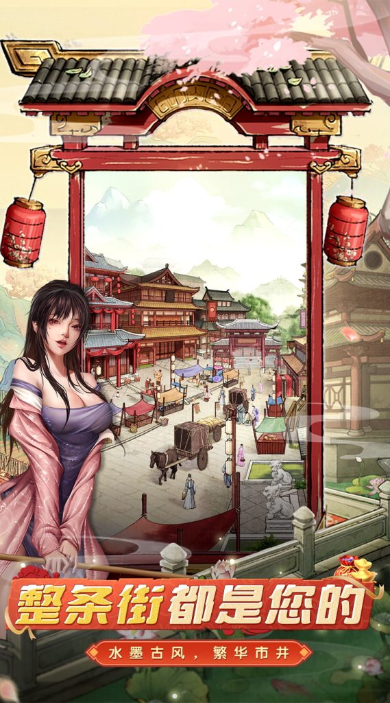 游戏采用精致的水墨画风,还原了古代市井的繁华盛景。在这座依水而兴的古城里,青石板路两旁,您的店铺鳞次栉比,从钱庄到茶楼,从当铺到棋馆,七十二行当的兴衰尽在您掌控之中。您可以根据自己的喜好自由规划店铺布局,打造独一无二的商业街区。